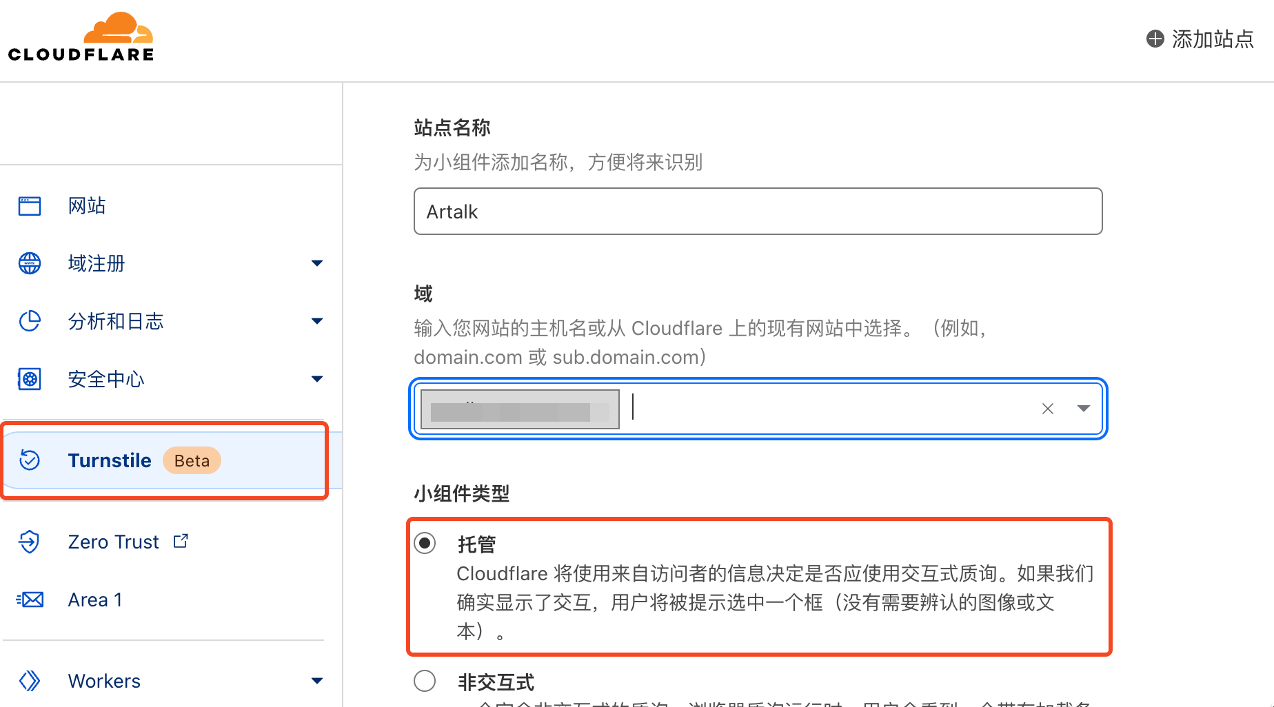 from the CF dashboard, then fill in these keys in the Artalk settings and change captcha_type